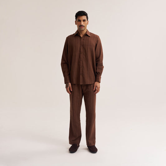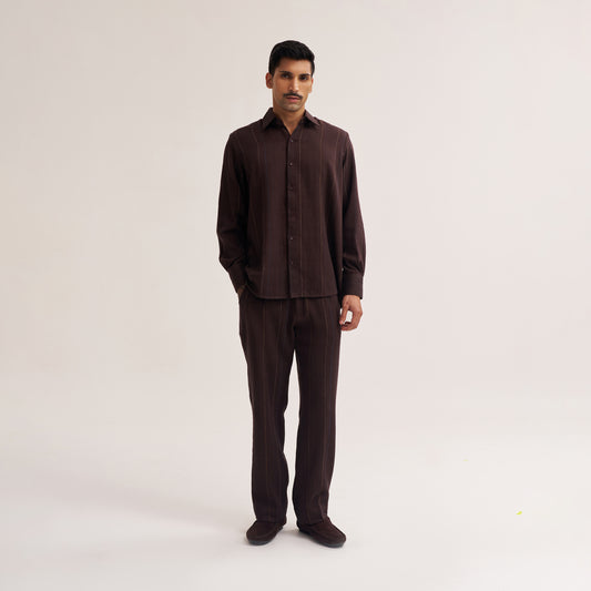 • Khadi Shirt For Men | Relaxed fit dark brown handwoven cotton striped shirt for men