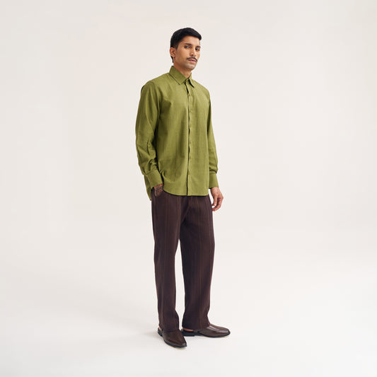 RELAXED FIT DARK BROWN HANDWOVEN COTTON SHIRT