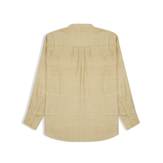 RELAXED FIT BEIGE LINEN- MATKA SILK SHIRT WITH BAND COLLAR