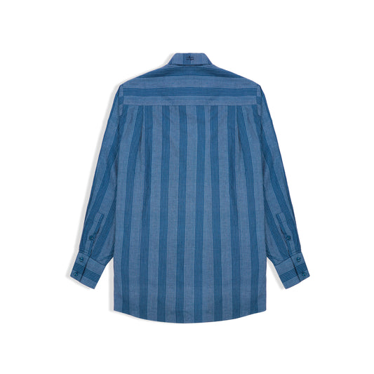RELAXED FIT INDIGO STRIPES HANDWOVEN COTTON SHIRT