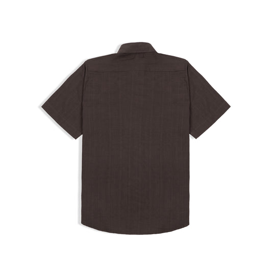 REGULAR FIT DARK BROWN HALF SLEEVE HANDWOVEN COTTON SHIRT