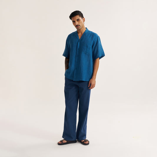 RELAXED FIT INDIGO LINEN SHIRT WITH NOTCH COLLAR