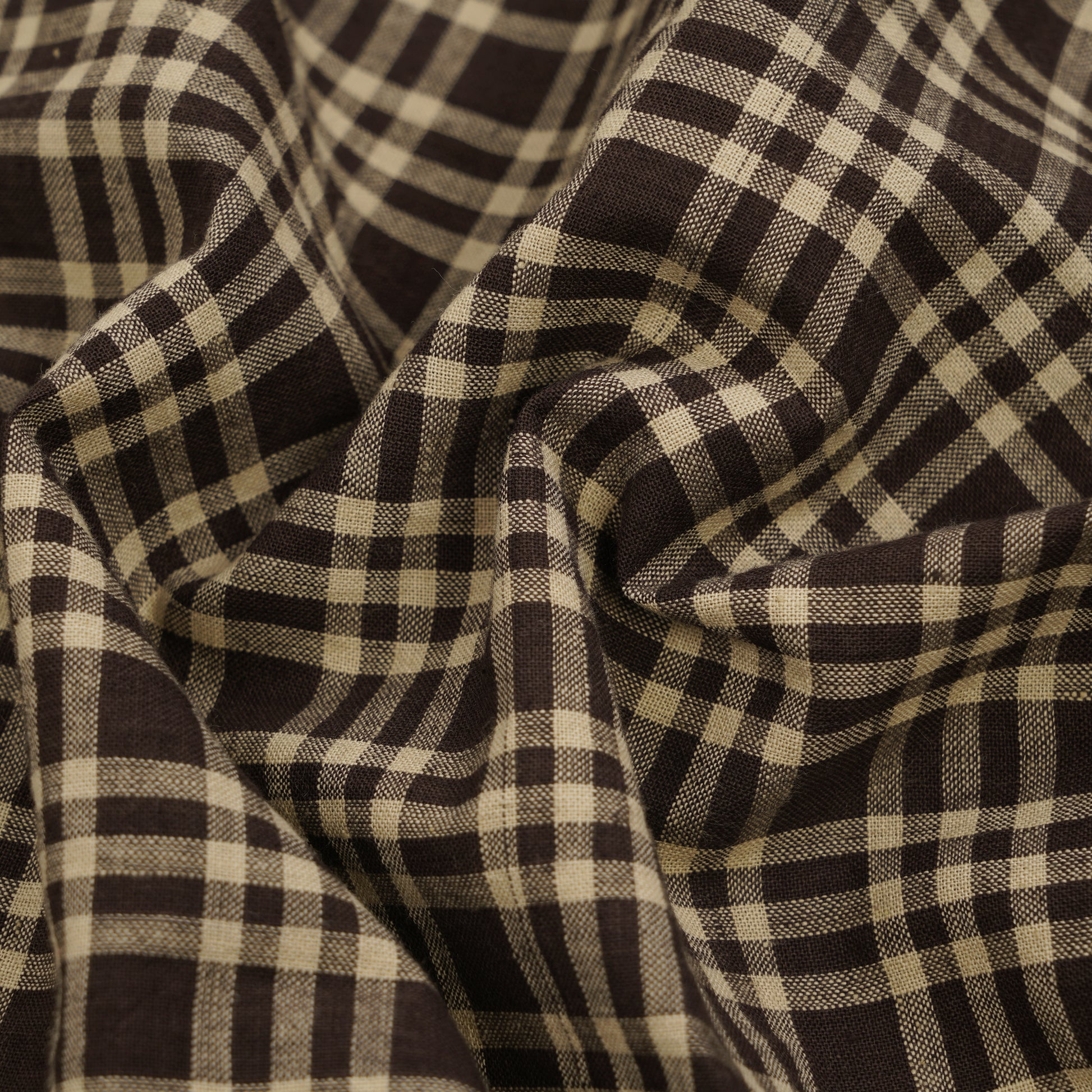 RELAXED FIT DARK BROWN CHECK HANDWOVEN COTTON SHIRT