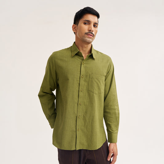 REGULAR FIT GREEN CHECK HANDWOVEN SHIRT